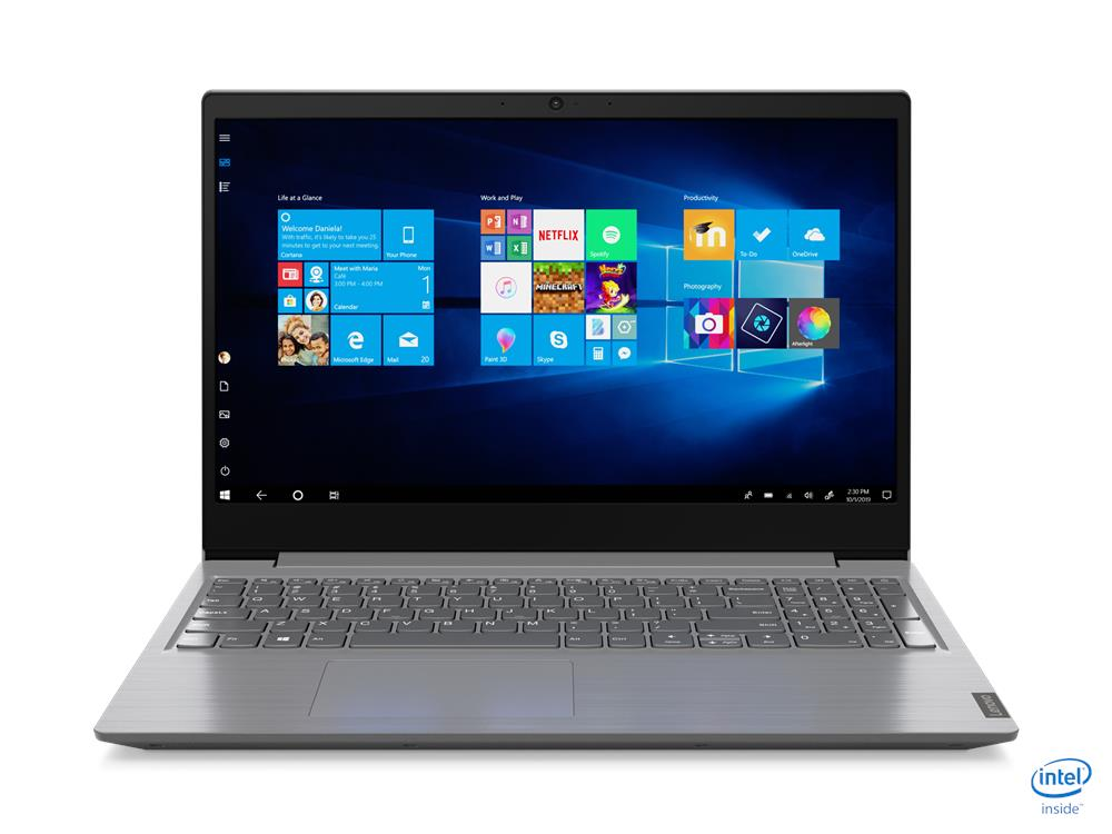 Lenovo V15. Família de processador: Intel Core i3, Modelo de processador: i3-1005G1, Frequência do processador: 1,2 GHz. Tamanho do ecrã na diagonal: 39,6 cm (15.6"), Tipo de HD: Full HD, Resolução: 1920 x 1080 pixels. Capacidade da memória incorporada: 8 GB, Tipo de memória interna: DDR4-SDRAM. Armazenamento: SSD. Capacidade da drive SSD: 512 GB. Sistema operativo instalado: Windows 10 Home. Cor do produto: Cinzento.